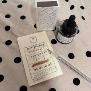 あいの紙ものやさんのオリジナルインクを作りました。その名もくまのいろ。書いても塗って伸ばしても素敵な色合いに仕上がりました!