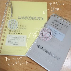 オリジナルのイラストの箔押し入りのリングノート、可愛いチャーム付き!中のリフィルの交換もできます!