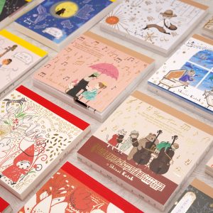 『銀河鉄道の夜』テーマのダブルポケットファイルと名作4種モチーフのポストカードセット。