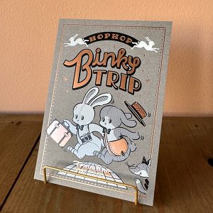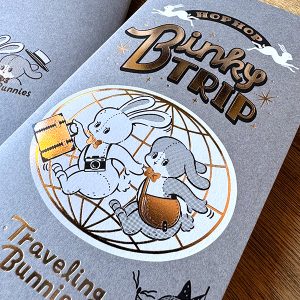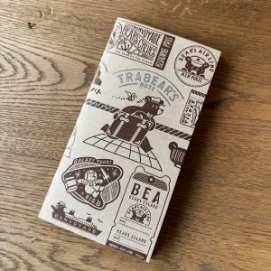旅するクマをモチーフに全面活版印刷に箔押しロゴで仕上げた