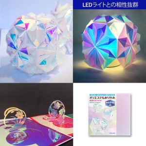 見る角度や光の反射により色や輝きが変わる不思議なおりがみ。LEDライトとの相性も抜群です。