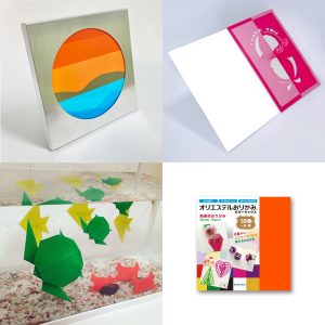 オリエステルおりがみ®は、紙では成し得ない澄みきった透明感と上品な光沢、そして優れた耐水性を兼ね備えたプラスチックフィルム製の特別なおりがみです。