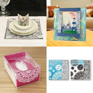 繊細なレース柄をデザイン。下地が透明なのでそのまま貼ったり、敷いたりするだけでインテリアになります。