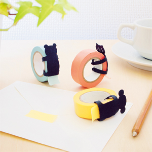 動物がハグする形をしたマスキングテープカッターです。テープをカットすることはもちろん、お気に入りのテープに付けて飾れば、楽しい卓上フィギュアになります。