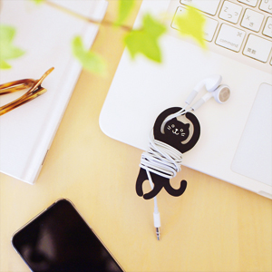 イヤホンケーブルが絡まるイライラを可愛く解消できるイヤホンケーブルホルダーです。体にクルクルとケーブルを巻き、足の間にイヤホンを留めると、簡単にケーブルを収納することができます。