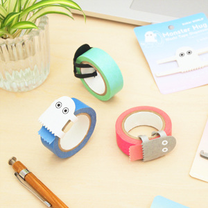 モンスターがハグする形をしたマスキングテープカッターです。テープをカットすることはもちろん、お気に入りのテープに付けて飾れば、楽しい卓上フィギュアになります。