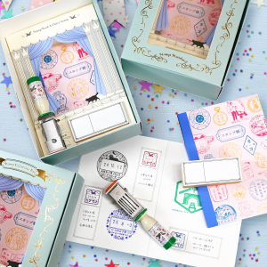 スタンプ帳、日付印、ラベルスランプが1セットになった、記念スタンプ収集の管理&記録に役立ちます。飾っても楽しい劇場風ボックス入り。