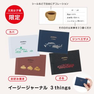 その日の出来事を3つ書くだけの日記。日付け記入式で好きな日に書けます。文具女子博限定の4柄。