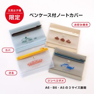 仕事に必要な道具をまとめて持ち運べるisshoni.ペンケース付ノートカバーの文具女子博限定柄を販売します