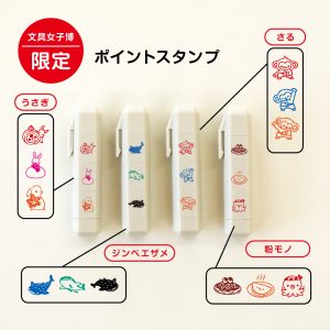 ポイントスタンプの文具女子博限定商品はうさぎ、ジンベエザメ、さる、粉モノと押すのが楽しいラインナップ