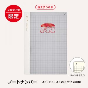 書いた情報を探せるページ番号入ノート、isshoni.ノートブックナンバーを「明太子うさぎ」柄で3サイズ販売