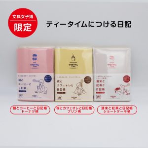 夜とカフェオレと日記帳などを展開するティータイムにつける日記の文具女子博限定商品です。