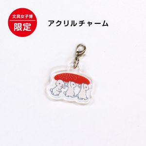 ノートカバーやカードファイルのファスナー部分に取り付けられるアクリルチャームの文具女子博限定商品。