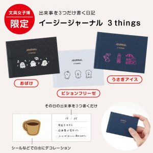 その日の出来事を3つ書くだけの日記。日付け記入式で好きな日に書けます。文具女子博限定の3柄。