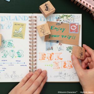 ムーミンの小説のアートワークを表紙にあしらったスタンプを押して記録するノート。裏移りしにくい中紙を使用。