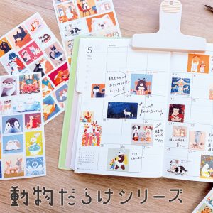 さまざまなイラストタッチの動物が描かれたシリーズ。トレペシールやステッカー、メモ、マグネットを展開。