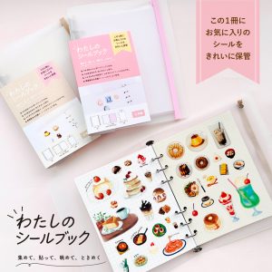 シンプルでかわいいシール帳。マチ付きバインダーとワンタッチ金具で、収納・整理・追加もかんたんに楽しめます。