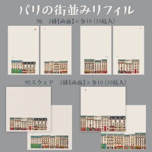 パリの建物イラストのメモ。穴を開ければ手帳に挟め、両面印刷なので、手帳に街並みが完成します。