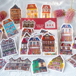 クマの住むヨーロッパの家が15枚入った和紙フレークシール!