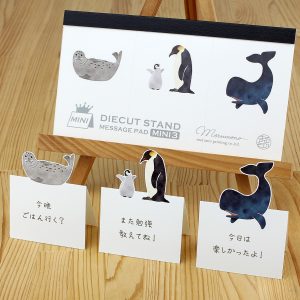 マルモ印刷の人気商品ダイカットスタンドメッセージパッドにミニサイズのメモ3柄が1冊に合体したイベント限定商品「ミニスリー」が仲間入り!
