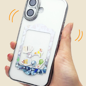 フレームとパーツを抜き取り、透明なケースにはさんで楽しめる、新感覚のスマホデコレーショングッズです。