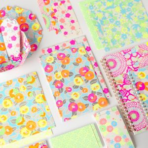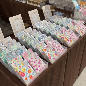 京の伝統技法で一枚ずつ染め上げた友禅紙。鮮やかな色彩と繊細な模様が魅力で、和文具から雑貨まで幅広く活躍します。毎年大人気の文具女子博限定販売の友禅紙です。サイズはA4より少し大きく、お気に入りの柄を探す時間がとっても楽しいです。neonシリーズを中心に130種類以上の友禅紙をお持ちします。