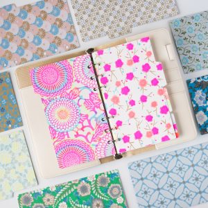 友禅紙を用いたシステム手帳インデックスは、M6とバイブルサイズの2サイズ展開です。お気に入りの柄で手帳を開けた時のワクワク感をプラスします。イベント限定販売のバイキング、博多でも開催します!