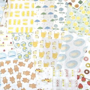 星燈社ブースで一番人気、包装紙詰め放題ビュッフェ。たくさんの絵柄の中から100枚ぐらい詰め合わせ。文具女子博限定柄もあります!