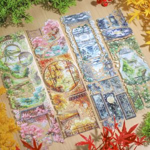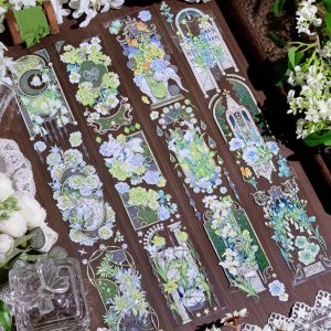 中国イラストレーター「辣椒Lala」さんデザインの、花と植物と中国伝統の「海棠花」ガラス模様を要素にしたテープ製品。
