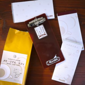 紙の上に置いたカップの輪じみや猫の足跡…あの日の記憶を伝票メモに。伝票クリップとアクリルチャームがセット。