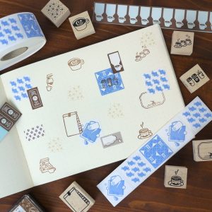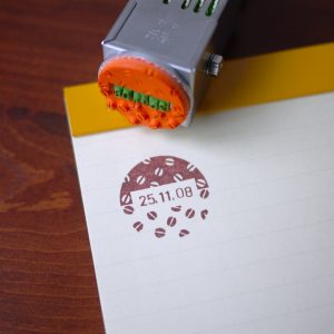 福わけはんこらしい“コーヒー豆の総柄”で仕上げた、まるいシルエットの日付印です。