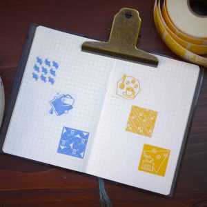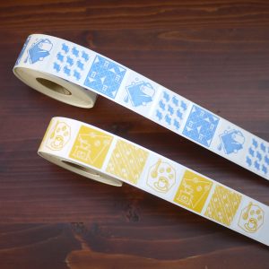 25mm角のシールが、青・黄色の2色展開。