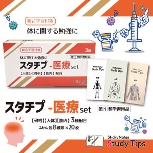 大人気のブック型学習付箋『StudyTips(スタチプ)』の「人体」「骨格」「筋肉」が3冊入った特別パッケージ!現役医師監修!医療系の学習にオススメです。