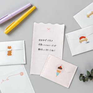 添付のシールから好きなパーツを貼ってモチーフを完成させるミニレター。手紙を綴じる瞬間まで楽しみがあるアイテムです。