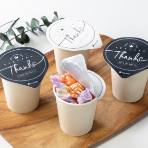 紙コップやクリアカップの蓋を自分で接着できるラッピングアイテム。カップにプレゼントを入れて「カップtops」で封をすれば、他にはないオリジナルラッピングのできあがり!