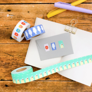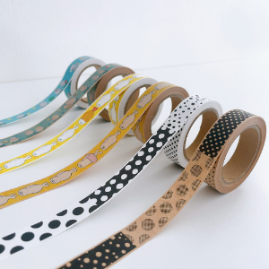 フルカラーでデザインが印刷されたクラフトテープ。柄がひと巡りするまでの長さは、なんと驚きの1m!!テープを伸ばすたびに新しいデザインが現れ、ワクワクしながら使うことができます♪