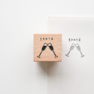 ワイングラスで乾杯するイラストに、手書き風の“santé”の文字がおしゃれなワンポイント