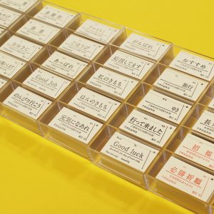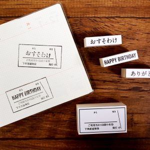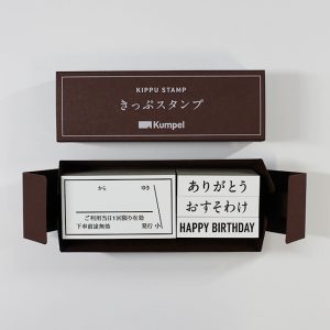 A型きっぷ柄と3種の言葉が入ったスタンプセット。