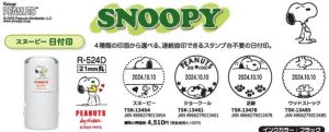 スヌーピーのかわいい日付印スタンプ。連続捺印OK、4種デザインで手帳や書類に便利。