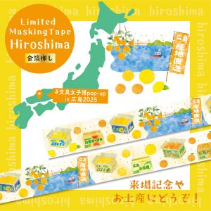 イベント限定マスキングテープには広島名物の柑橘類を詰め込んだ金箔押しの「広島柑橘物語」や紙もの文具に銀箔がきらめく「Letters」が登場♪