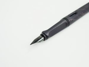 LAMYの定番サファリとのコラボモデル。青みを帯びたスチールブラック。マットな質感が静かに手元を引き立てます。万年筆初心者にぴったりな1本です。