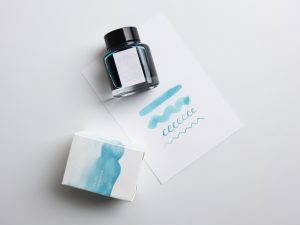 透き通るような透明感を持つ、青緑のインクです。